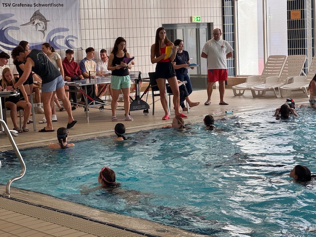 Die Elternbeiratsvorsitzende freute sich, dass so viele Mitglieder der Schulfamilie das Spendenschwimmen großzügig unterstützt hatten. Sie bedankte sich vor allem auch bei der Wasserwacht und dem Schwimmverein Grafenau für die Mithilfe! Der „erschwommene“ Betrag kommt selbstverständlich der Förderung des Schwimmunterrichts zugute.