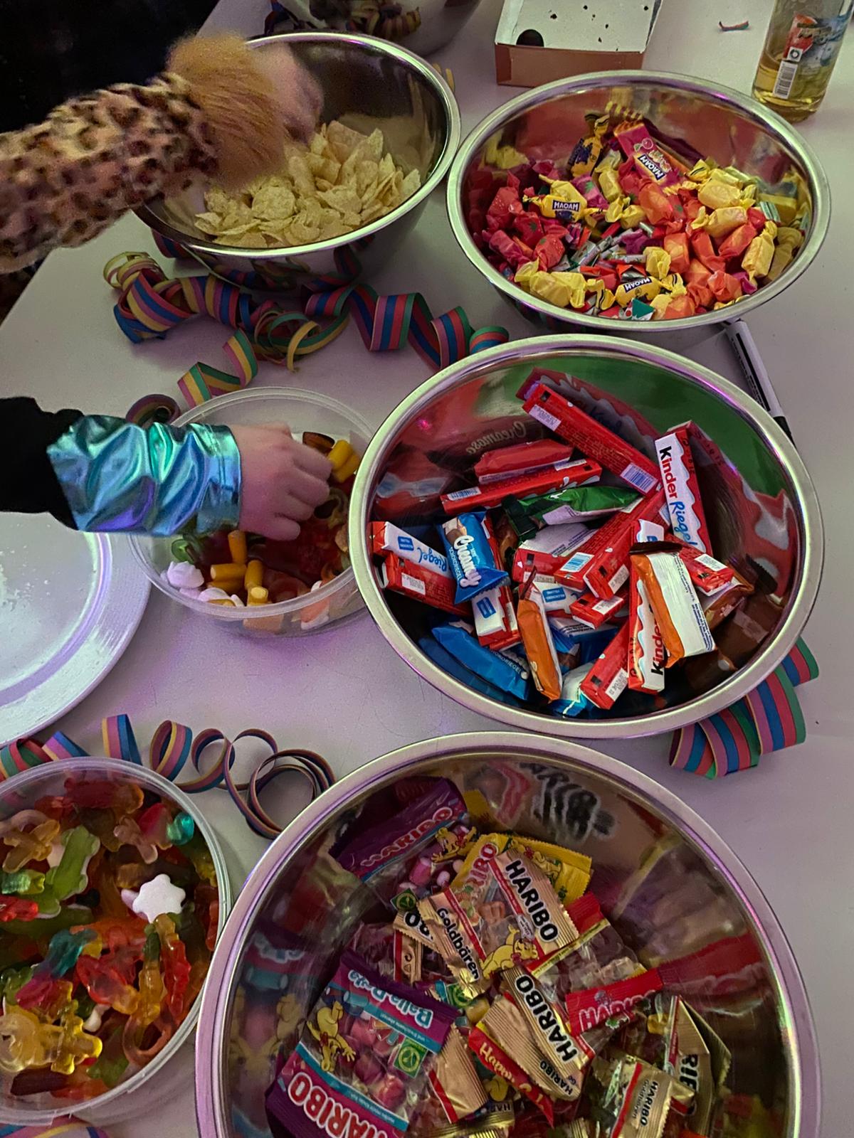 Und wieder einmal ging am Unsinnigen Donnerstag die Post ab!  Mittlerweile gehört die Faschingsparty an unserer Schule, die die Tutorinnen und Tutoren für die 5. Klassen organisieren, zur festen Einrichtung am LLG. Bereits in der 6. Stunde konnte man unseren Fünftklässlern ihre Nervosität und natürlich ihre Vorfreude bezüglich der bevorstehenden Party nach der Mittagspause deutlich anmerken. Es gab ja auch noch viel zu tun, nämlich sich umziehen, schminken und sich eine Performance für den Kostümwettbewerb überlegen. Dazu kam die Spannung, was sich hinter den verschlossenen Türen zur unteren Aula verbirgt, denn seit der 2. Pause liefen  hier die Vorbereitungen durch das Tutorenteam, das zuallererst einmal die Räumlichkeiten mit Verdunklungsplanen vor neugierigen Blicken schützte,  schon einmal einen lauten Soundcheck durchführte und das Büffet mit Knabbereien, Süßigkeiten und Getränken bestückte.
