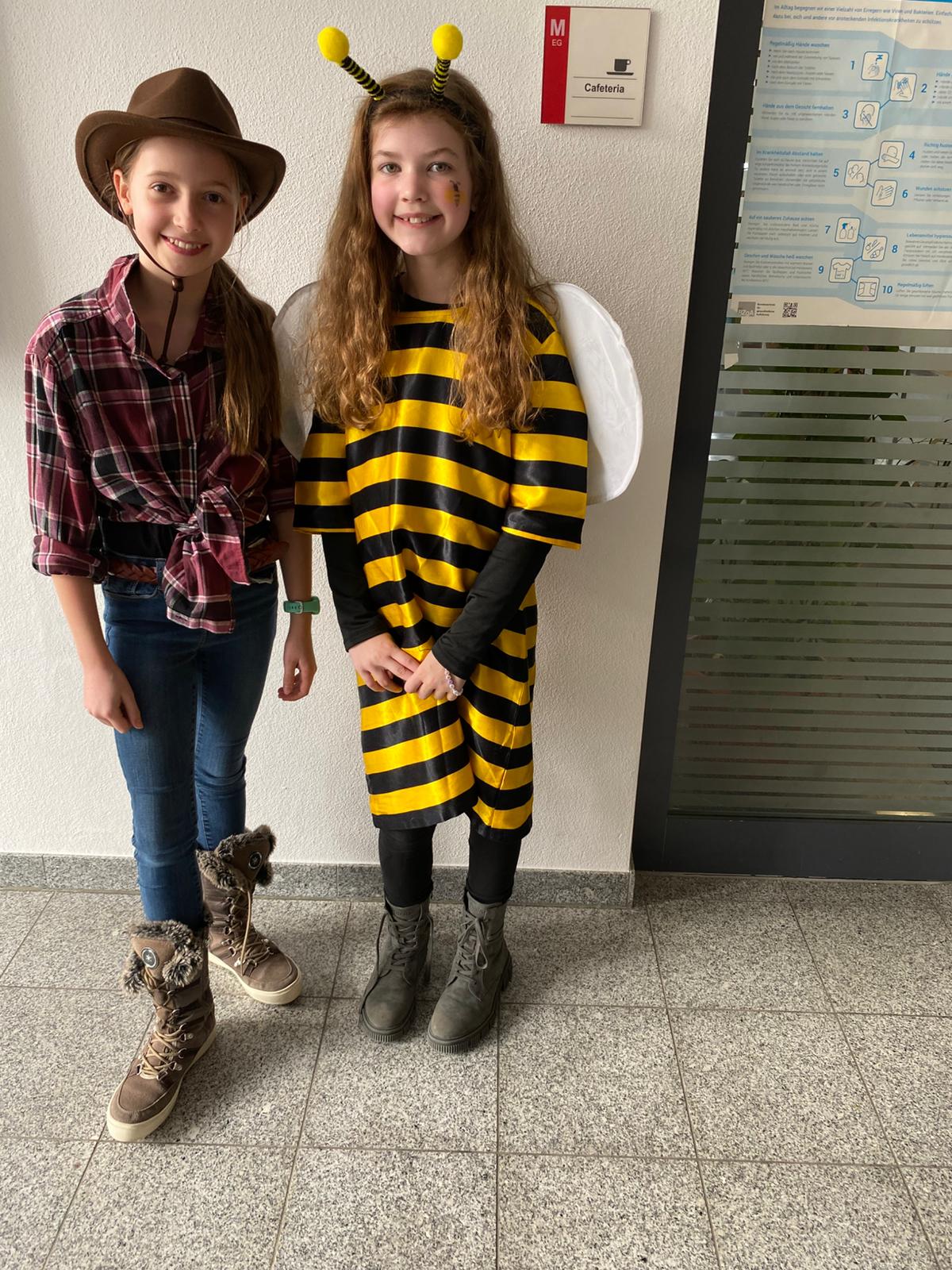 Schließlich wurden Aliens, Löwen, Leoparden, Piraten, Tanzbärchen, Primaballerinas, Draculas, Prinzessinen und viele andere farbenprächtige und fantasiereiche Gestalten hereingelassen, um sich umfänglich zu vergnügen. Die Tutoren hatten sich ein buntes Programm, bestehend aus Spielen und Tänzen, einfallen lassen. Natürlich wurden wieder die originellsten Kostüme prämiert, wobei es dabei auch um eine entsprechend passende Performance ging. Das Rennen machte „Piratin“ Carolin Beckert aus der Klasse 5a, gefolgt von Laura und Lea Schuhbaum aus der 5b, die sich als Löwin und Leopardin verkleidet hatten. Der dritte Platz ging an Zarina Tovmasyan (Tänzerin) und Lavin Ramedan (Cheerleader) aus der 5a, die gemeinsam eine flotte Sohle aufs Parkett legten. Belohnt wurden die Siegerinnen mit Verzehrgutscheinen aus der Mensa. Teilweise schweißgebadet und erschöpft, in erster Linie aber bestens gelaunt, machten sich am späten Nachmittag alle auf den Nachhauseweg.
